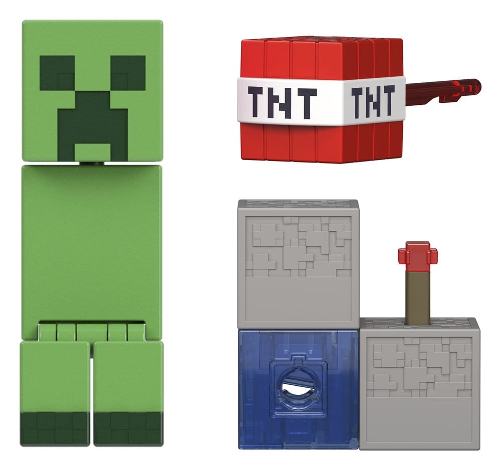 Der ganze Minecraft-Spaß kann mit diesen Actionfiguren, die maßstabsgetreu und ca. 8 cm groß sind, und Zubehörsets eingefangen werden. Jede der authentischen Figuren umfasst ein kultiges Zubehörteil aus dem Spiel und 1 Redstone-Bauteil. Mit den Bauteilen der sechs Sammelfiguren lässt sich eine funktionstüchtige Redstone TNT-Kanone bauen. Die Figuren sind mit beweglichen Gelenken ausgestattet und bieten so noch mehr Möglichkeiten zum Geschichtenerzählen. Alle Artikel separat erhältlich. Abweichungen in Farbe und Gestaltung vorbehalten.