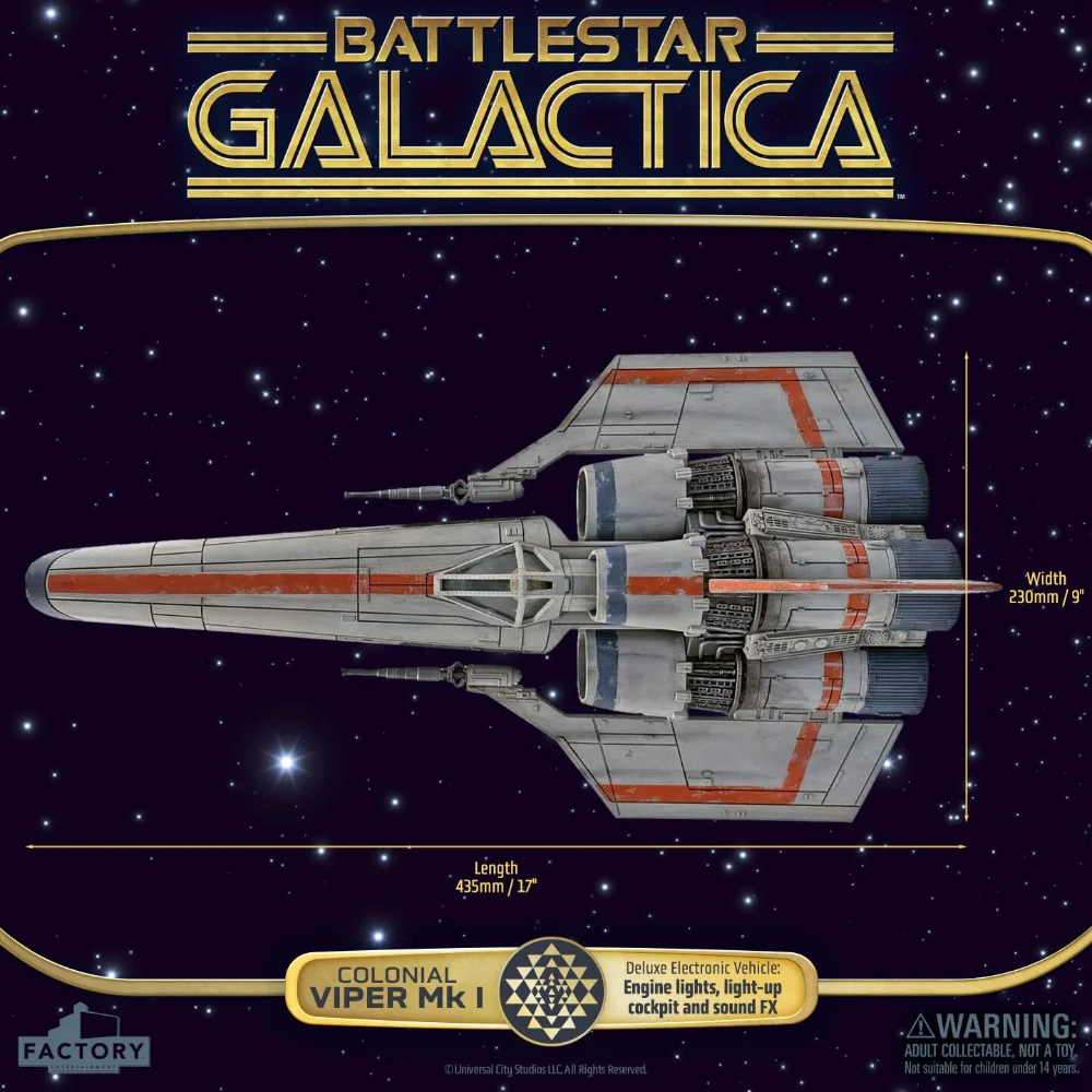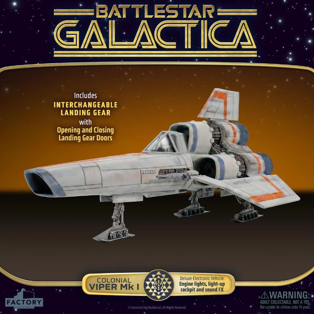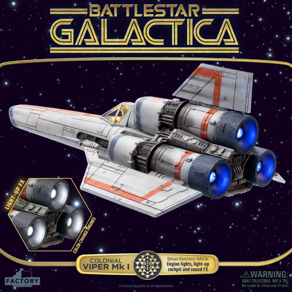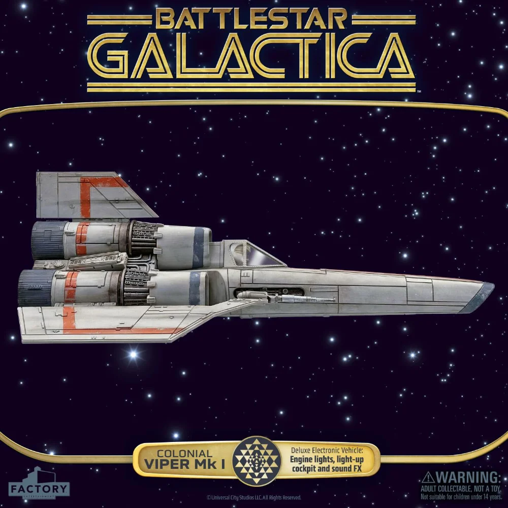 Mit der Rückkehr von Battlestar Galactica ins Sammlerregal wird eine echte Science-Fiction-Ikone der 70er Jahre neu gefeiert. Factory Entertainment bringt nicht nur eine brandneue 3.75 Zoll Figurenreihe an den Start, sondern liefert mit dem Colonial Viper MK 1 Electronic Vehicle auch direkt das passende Herzstück für jede klassische Galactica-Sammlung.