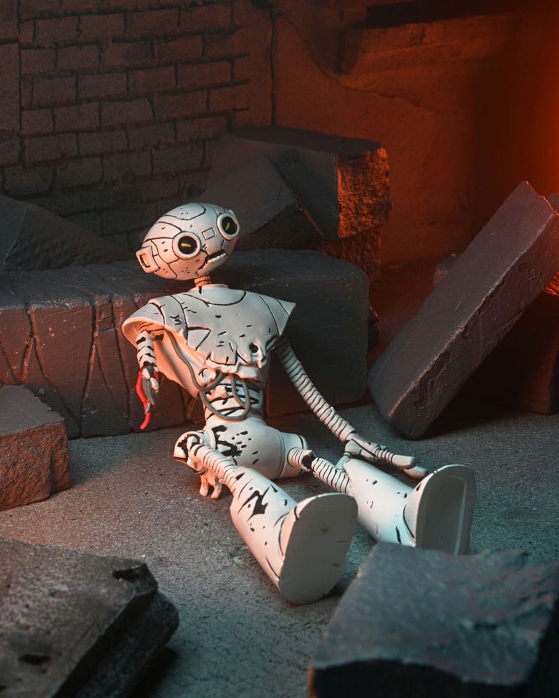 Dieses Zubehörset enthält einen bandagierten Ronin-Kopf, der mit früheren Ronin-Actionfiguren austauschbar ist (nicht im Lieferumfang enthalten), sowie eine taktische Weste für die SYNJA Patrol Bot-Figur (nicht im Lieferumfang enthalten) und zwei neue Köpfe: SYNJA-Offizier und kampfgeschädigter Patrouillen-Bot. Zu den weiteren Artikeln gehören Energieeffekte für das Techno-Tonfa, eine durchsichtige Rauchwolke und drei Rauchbomben für die perfekte Ninja-Verschwindung, eine im Kampf beschädigte Fugitoid-Figur, Splinters Tagebuch, das auf die Seite „Kein Frieden“ gedreht wurde, ein Hiroto-Hologramm, Waffen und mehr!
