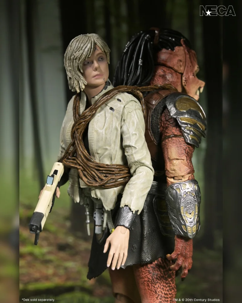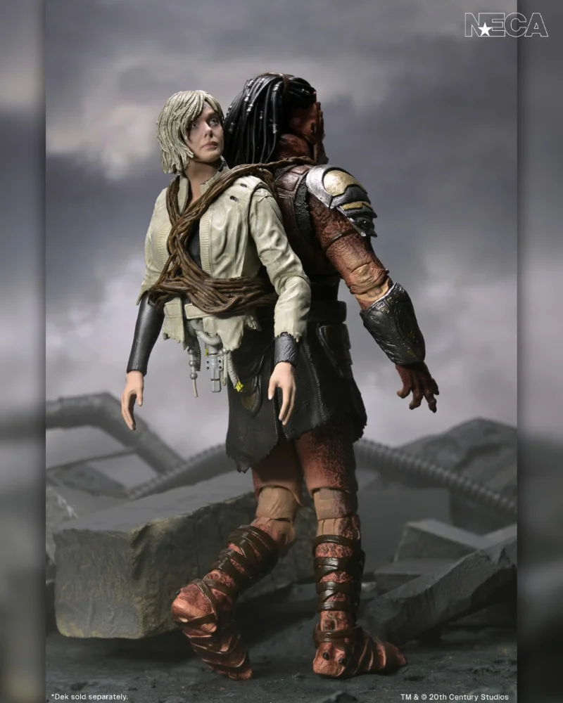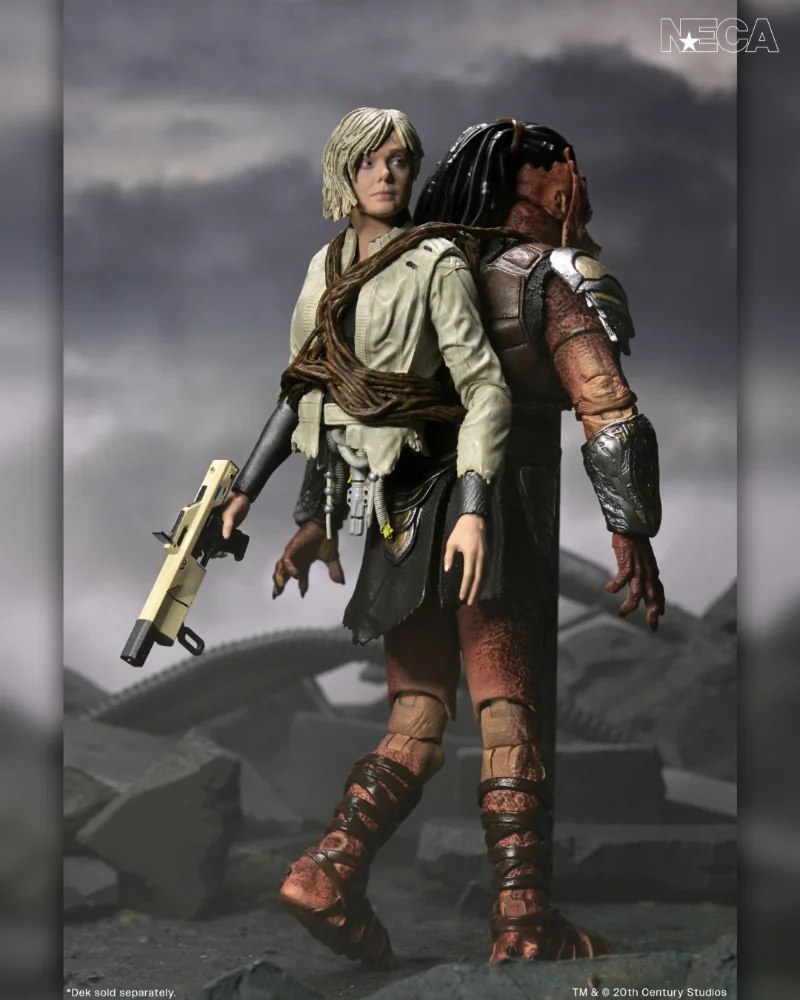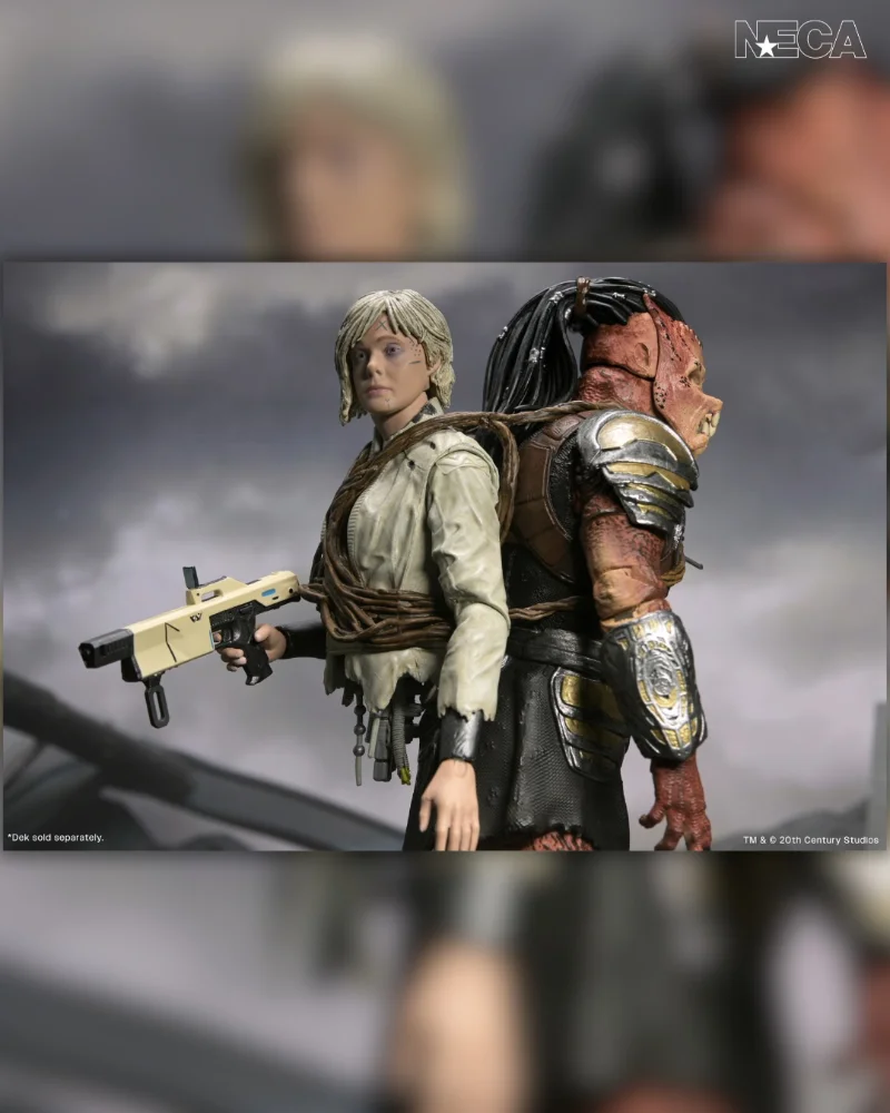 Der Film selbst spielt auf dem abgelegenen Planeten Genna und erzählt eine etwas andere Predator-Geschichte. Statt klassischer Jagd steht hier ein ausgestoßener Predator im Mittelpunkt, der sich mit ungewöhnlichen Verbündeten zusammentut. Genau diese Dynamik greift NECA jetzt auch in Figurenform auf.
