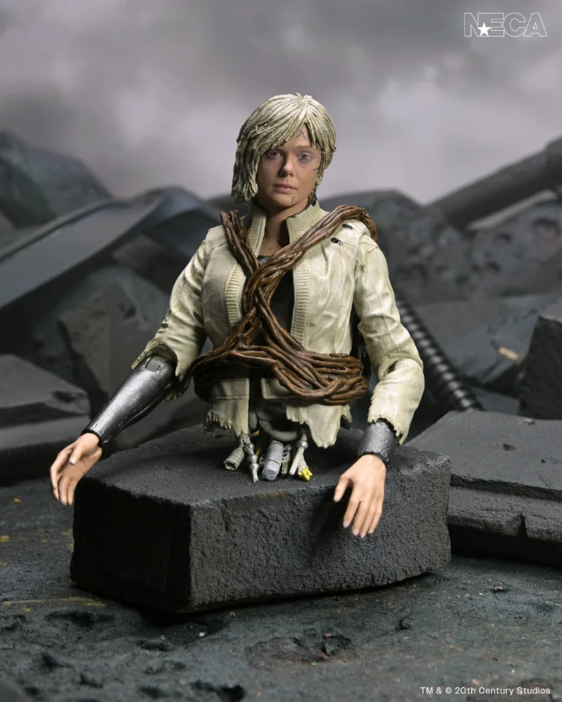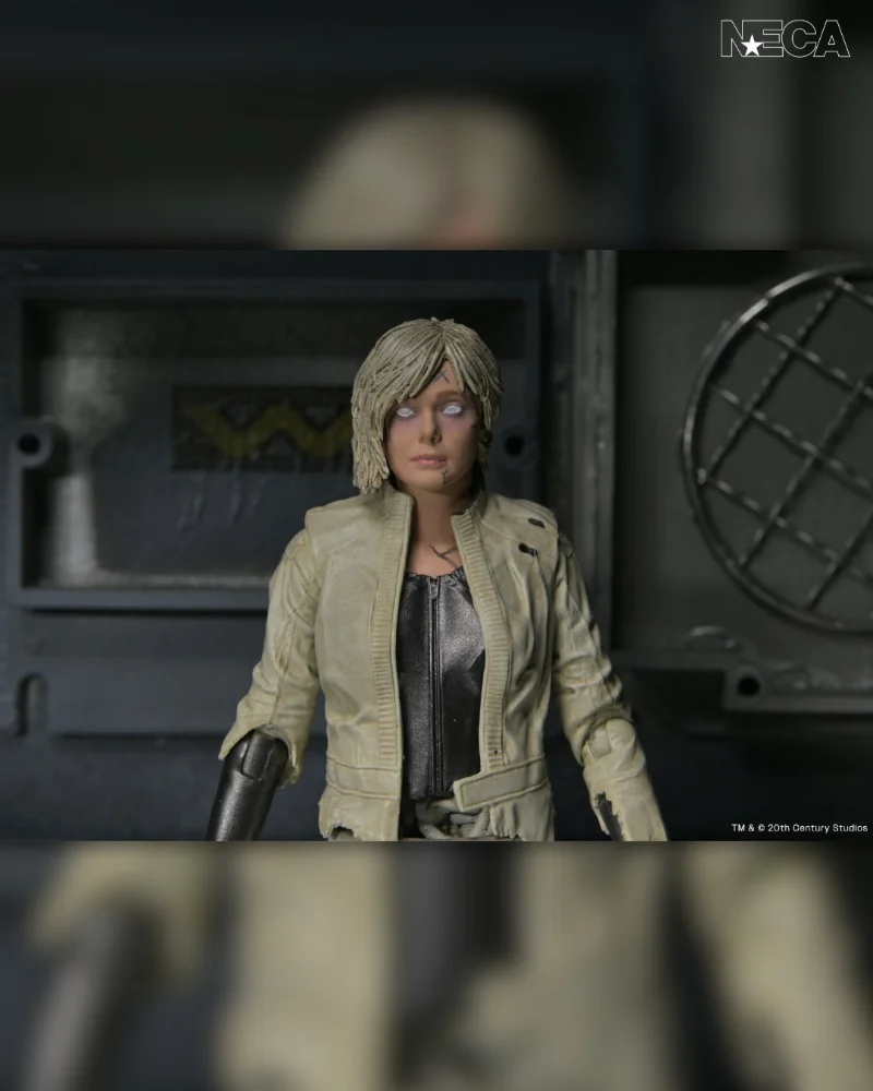 Thia gehört zu den auffälligsten Figuren des Sets. Als beschädigte Weyland-Yutani Androidin, die halb zerstört ist, bringt sie direkt diesen düsteren Sci-Fi-Vibe mit.