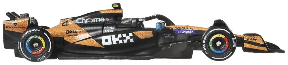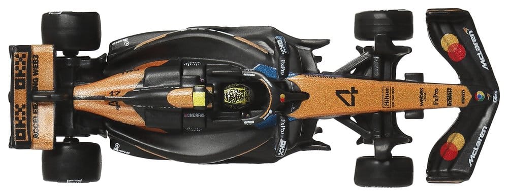 Mit diesem Hot Wheels Premium McLaren F1-Team 2er-Pack schaltet jede Hot Wheels Sammlung in den Turbogang. Das Set enthält Die-Cast-Rennautos im Maßstab 1:64, die von den Modellen inspiriert sind, die Oscar Piastri und Lando Norris fahren. Jedes Auto verfügt über authentische Lackierungen mit realitätsnahen Frontflügeln und Seitenkästen sowie detaillierten Fahrerhelmen. Die Karosserie und das Fahrwerk aus Metall sowie die Real-Riders-Reifen unterstreichen die hochwertige Verarbeitung der Autos. Mit der speziellen Verpackung und dem individuellen Ausstellungssockel punkten beide Fahrer. Abweichungen in Farbe und Gestaltung vorbehalten.
