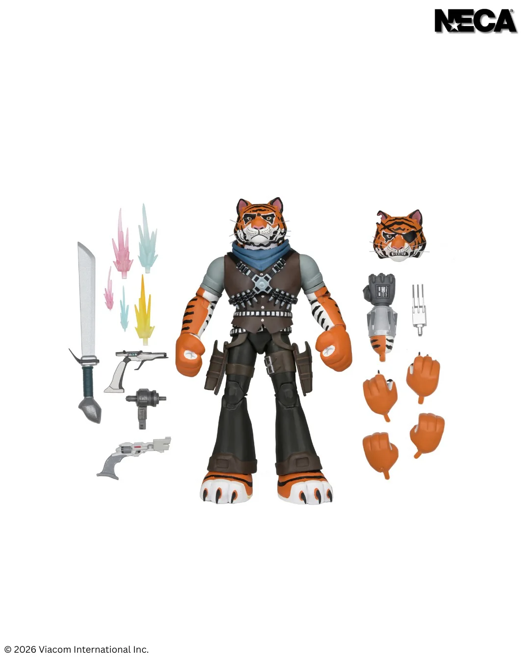 Im typischen NECA Ultimate-Stil wird die Tiger Claw Figur mit einer großen Auswahl an Zubehör geliefert, das sich an verschiedenen Episoden der Serie orientiert.