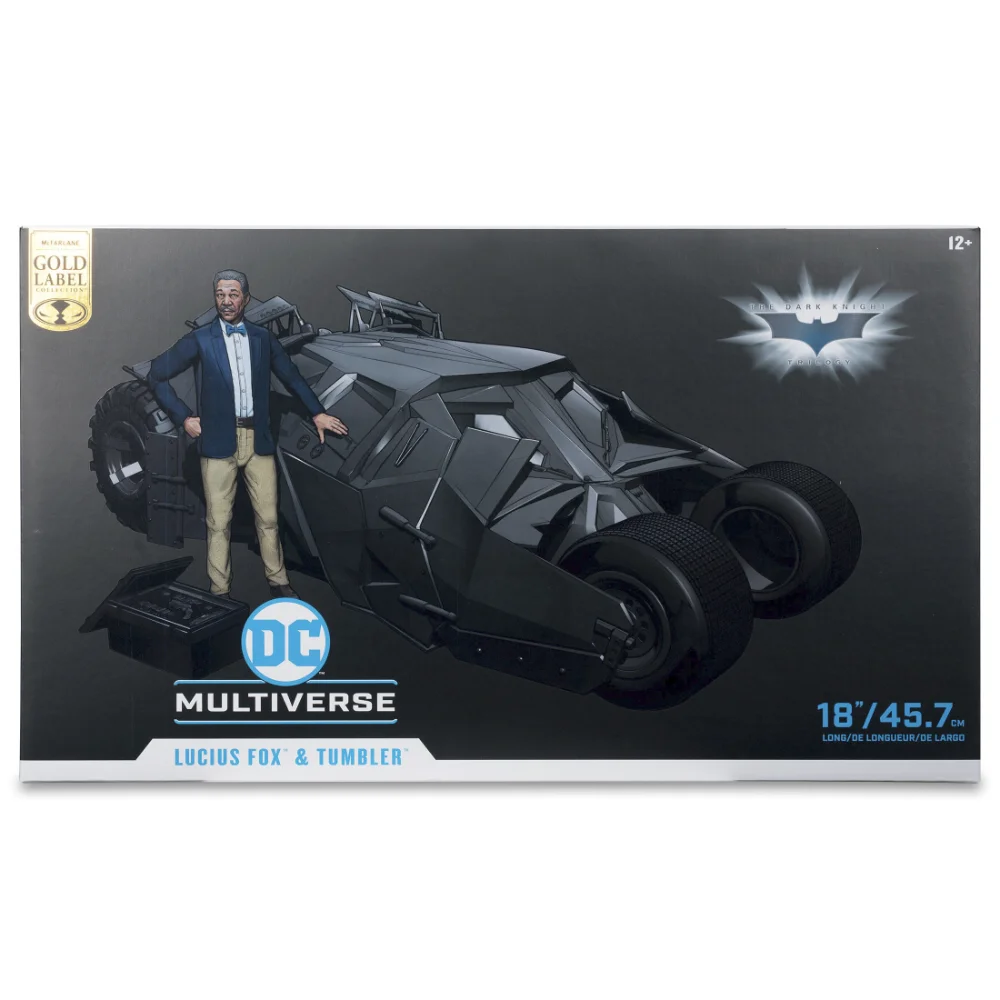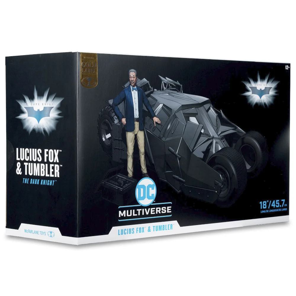 - Das McFarlane Toys TUMBLER & LUCIUS FOX Figur und Fahrzeug basiert auf dem Kinohit Batman: The Dark Knight.