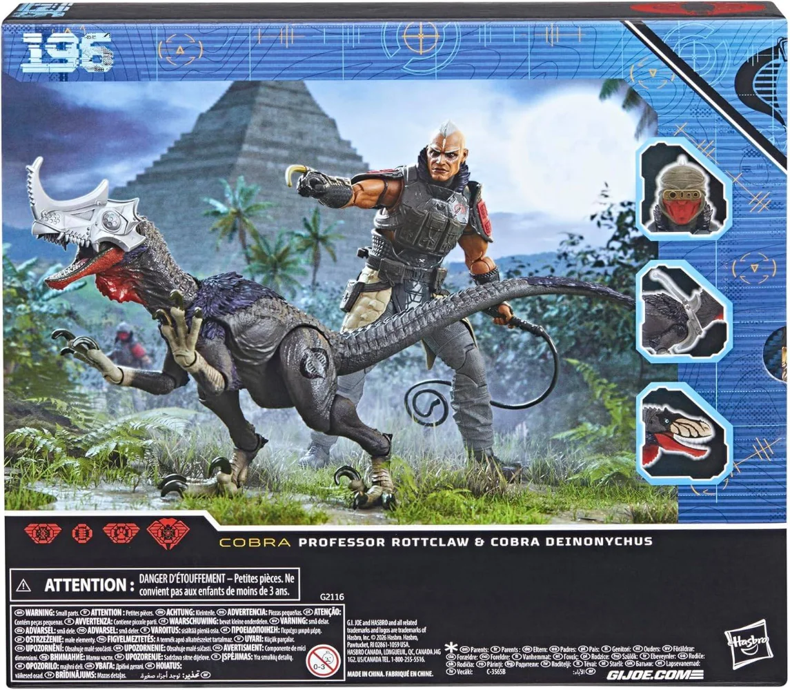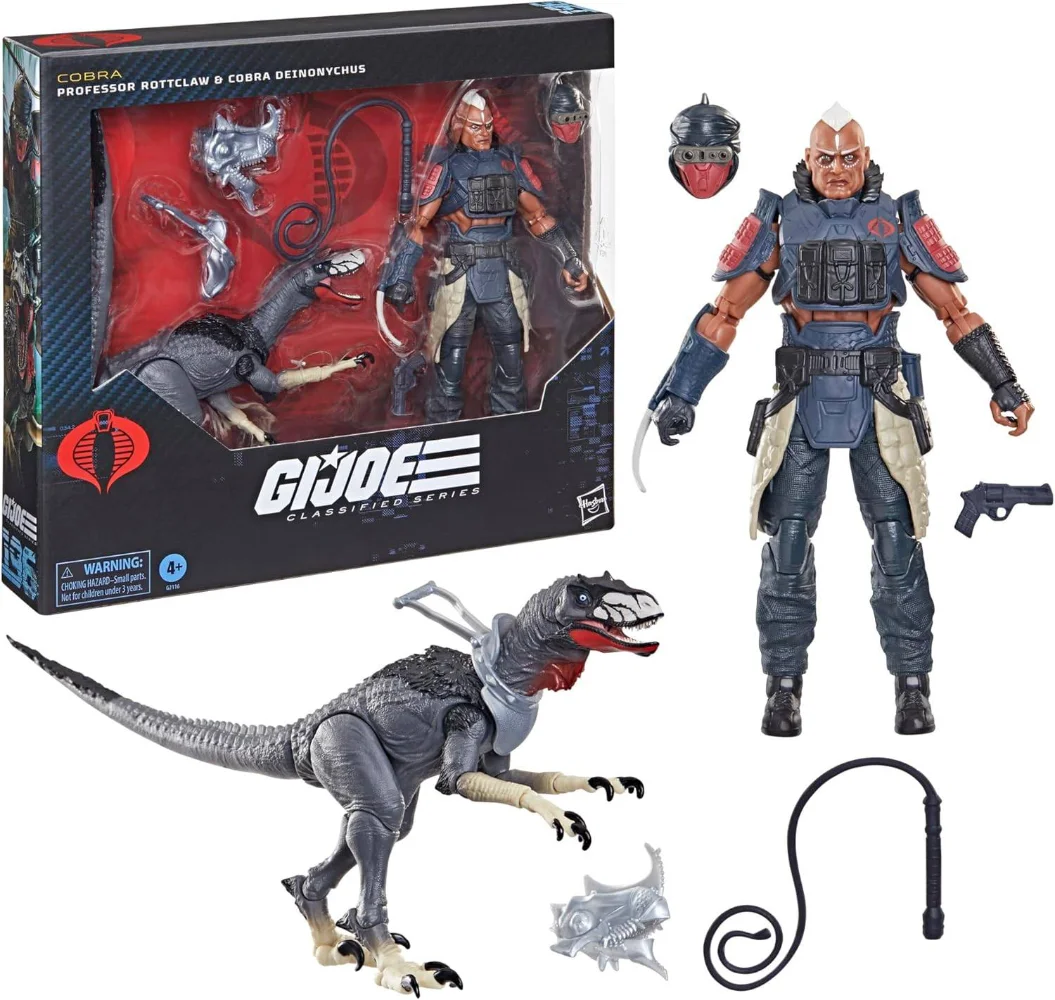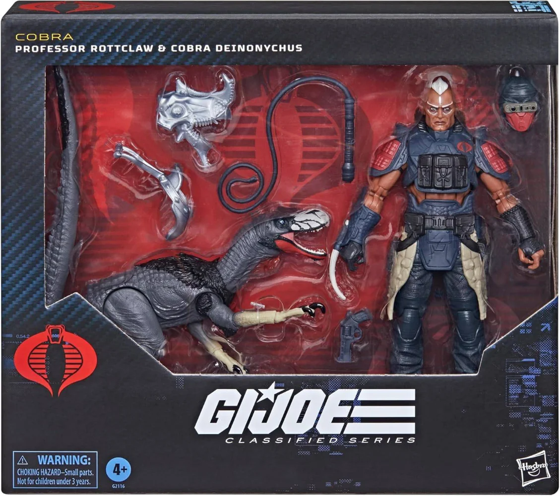 Noch ungewöhnlicher wird es mit Professor Rottclaw, einer Figur, die stark in Richtung Mad-Scientist geht. Hasbrokombiniert ihn mit dem Cobra Deinonychus, einem gefährlichen, dinosaurierartigen Begleiter, der sofort ins Auge fällt.